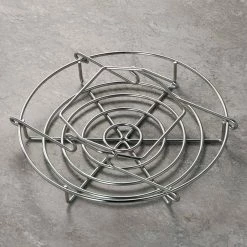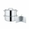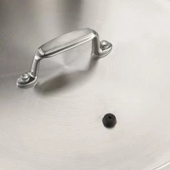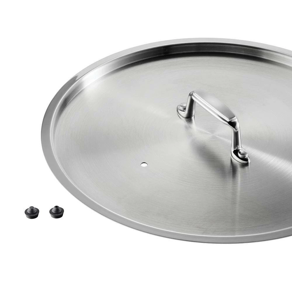 - Stainless steel lid with a unique vented opening that can be used with a thermometer or covered to seal in steam