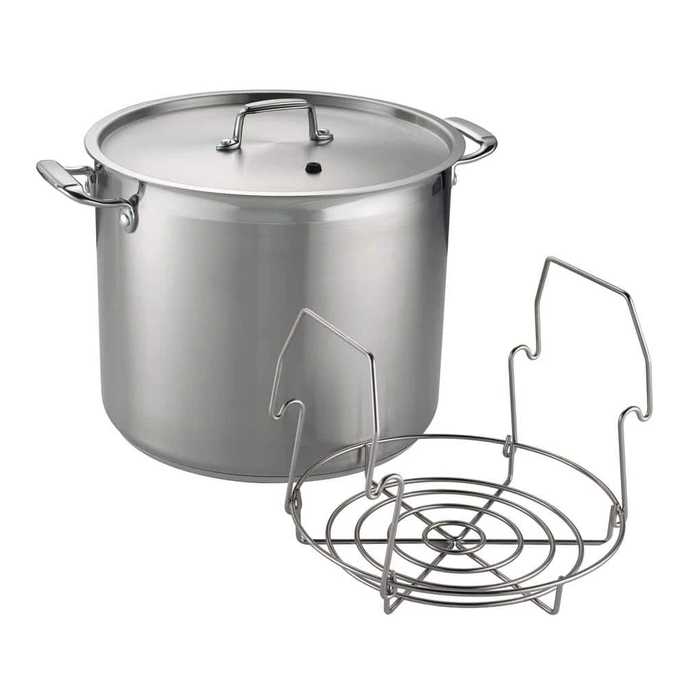 - Set includes: – 22 qt. stock pot – stainless steel canning jar rack