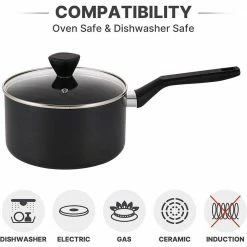 - Heats Quickly and Evenly – Made from top-grade aluminum alloy that conducts heat quickly and evenly for precise temperature control. The EPPMO non-sticking hard-anodized saucepan is riveted bakelite handle that is easy to grip and maneuver