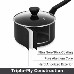 EPPMO Hard-Anodized Aluminum Nonstick Sauce Pan has a premium nonstick interior that makes cooking and cleaning easy and convenient. The hard-anodized exterior construction is stronger, it resists scuffs and scratches better than regular cookwares. Furthermore, our hard-anodized aluminum nonstick pans allows uniform distribution of heat, helps to cook food faster compared to regular cookware.