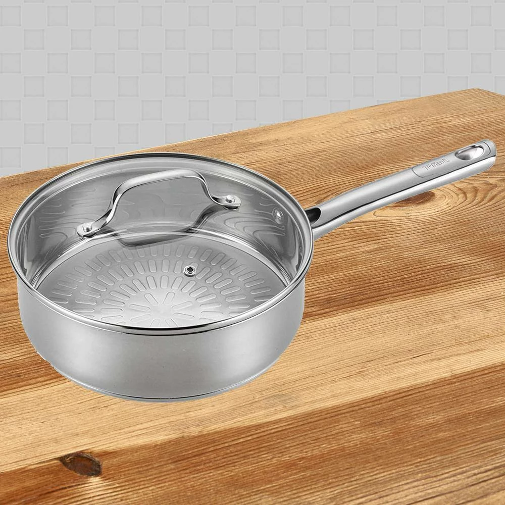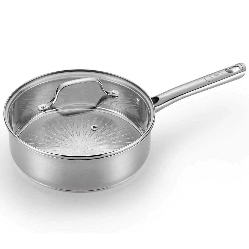 T-fal’s Performa cookware solves the problems of cooking with stainless steel. Performa Stainless Steel fry pans and saute pans feature the Techno Release raised pattern on the pan’s interior for easier release of food and easier cleanup. Minimal effort should restore pans to their original beauty. All Performa cookware is constructed of premium quality stainless steel and is compatible with all cooktops, including induction. The riveted stainless steel handles provide an ergonomic and secure grip. Performa Stainless Steel cookware is also dishwasher safe and oven safe. The vented glass lid makes it convenient to monitor the cooking process. Preparing delicious meals with stainless steel has never been easier. Performa cookware is covered by a Lifetime Limited Warranty.