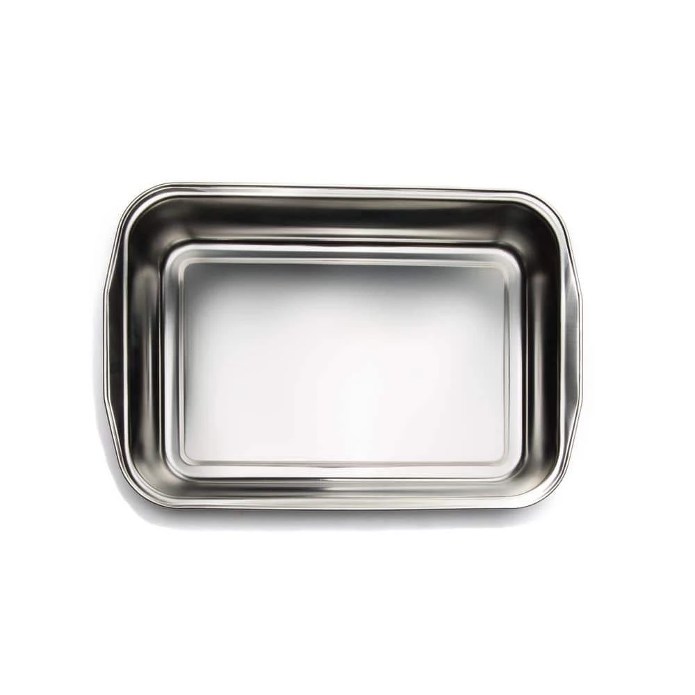 Bake scrumptious treats with this Roasting Pan. Our beautifully crafted stainless steel bakeware features a stain, scratch, and rust resistant surface that will not warp or corrode, but will preserve its elegant shine over time. Having the ability to withstand extreme temperatures and heavy scrubbing, this non-reactive and nonporous pan will provide for-years of safe and successful baking. Its size makes it perfect for toasting an array of tasty nuts, roasting a succulent selection of veggies, or baking a batch of your favorite bar cookies. Best of all, leftover food particles will wash off effortlessly. For perfect, even browning, bake Fox Run.