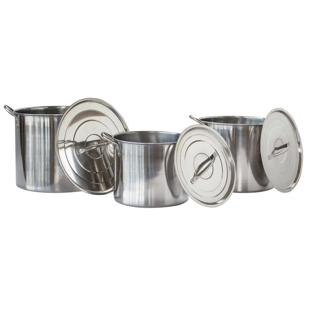 - Set includes 3-different size pots – one 8 qt., one 12 qt., and one 16 qt.