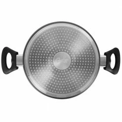 This Oster 3.0 Quart non-stick pan is perfect for every day use. This pot is constructed with a forged aluminum body that heats evenly all around and a non stick interior coating for a mess free cooking experience. Non stick feature allows you to cook low fat foods without having to worry about stuck on food remnants and is perfect for easy and fast clean up. Ergonomic Bakelite handles and knob are cool to the touch for heat-free transportation. This pan is shallow and wide which makes it perfect for stir fries, pasta dishes, and other every day meals. This pot is compatible with gas, electric, halogen, and induction stove tops.