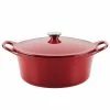 Whip up delicious meals for your family and friends with the Better Chef Dutch Oven in Red. The non-stick coated interior allows for healthier cooking as it requires little to no fat, and the food will slide right off the pot, making cleaning a breeze. The Bakelite handles remain cool to the touch to prevent burns and scalds. For added convenience, you can quickly monitor the cooking process through the vented tempered glass lids.