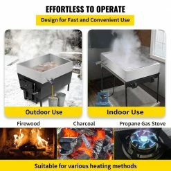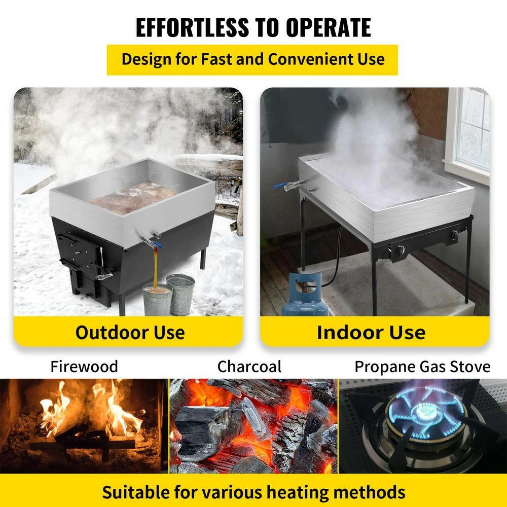 - Outdoor & Indoor Use: This syrup pan is suitable for outdoor or indoor use, and supports many heating fuels: firewood, charcoal, propane gas stove, etc. It can be used according to your cooking preferences, very convenient, and there is no need to buy additional accessories