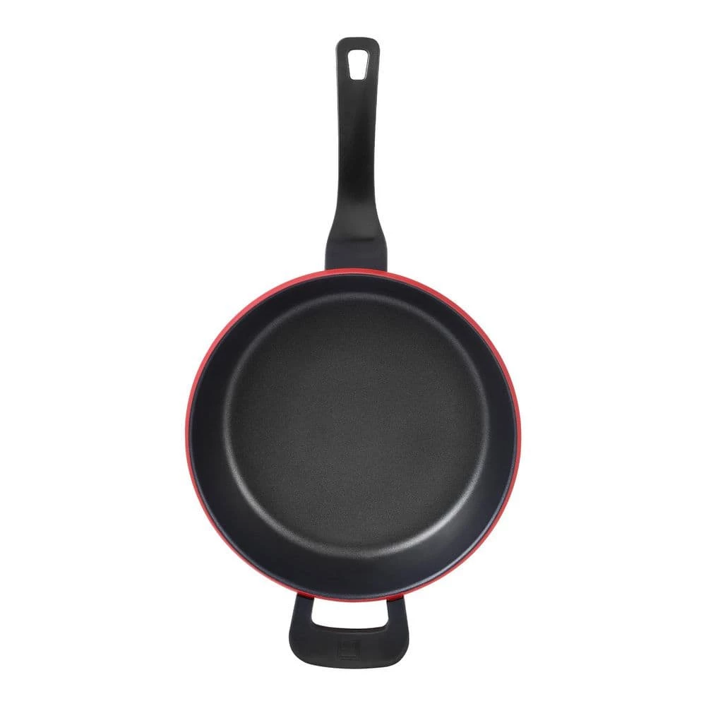 This Saute Pan from the Bergner Retro collection locks in heat and moisture, making it the perfect companion for saucy dishes, chili, or any dish that requires a longer cooking process. The high sides make this saute pan your go-to pan when deep frying or sauteing. The pan that can do it all, take the saute pan from the stove to the oven to your table.