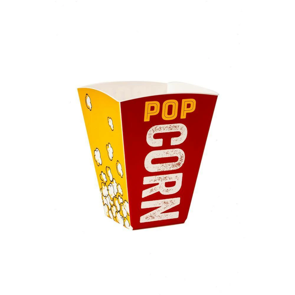 - Classic cinema styled reusable popcorn tub holds 5 quarts of popcorn.