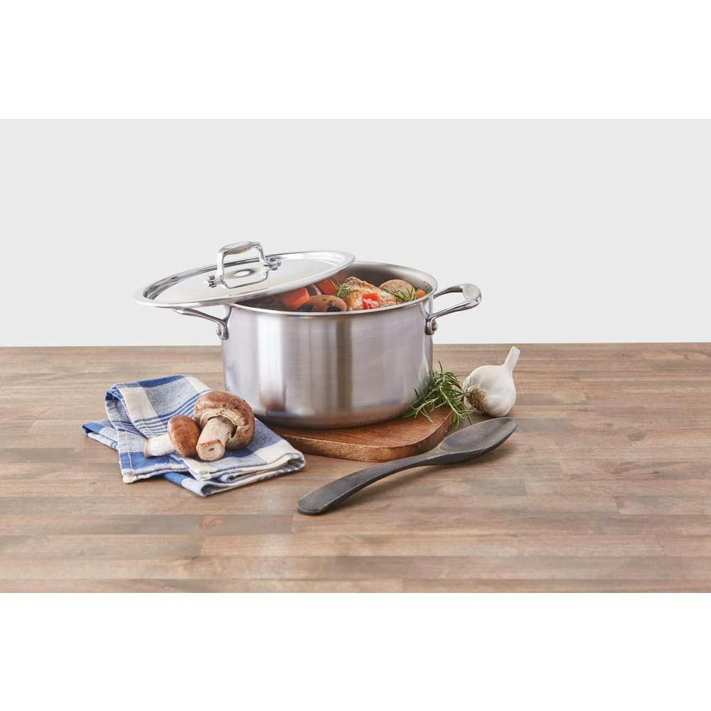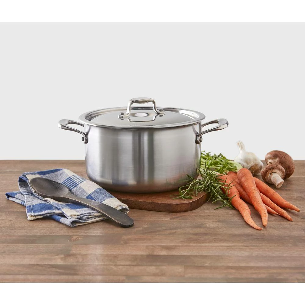 NUCU 5-ply brushed stainless steel stock pots, available in 4 qt., 9.5 qt. and 14 qt. sizes, are perfect for simmering vegetables or meat stocks, slow cooking soups, chili and stews, and boiling pasta. These pots heat evenly, are induction ready, and can stand up to years of heavy use in your home kitchen.