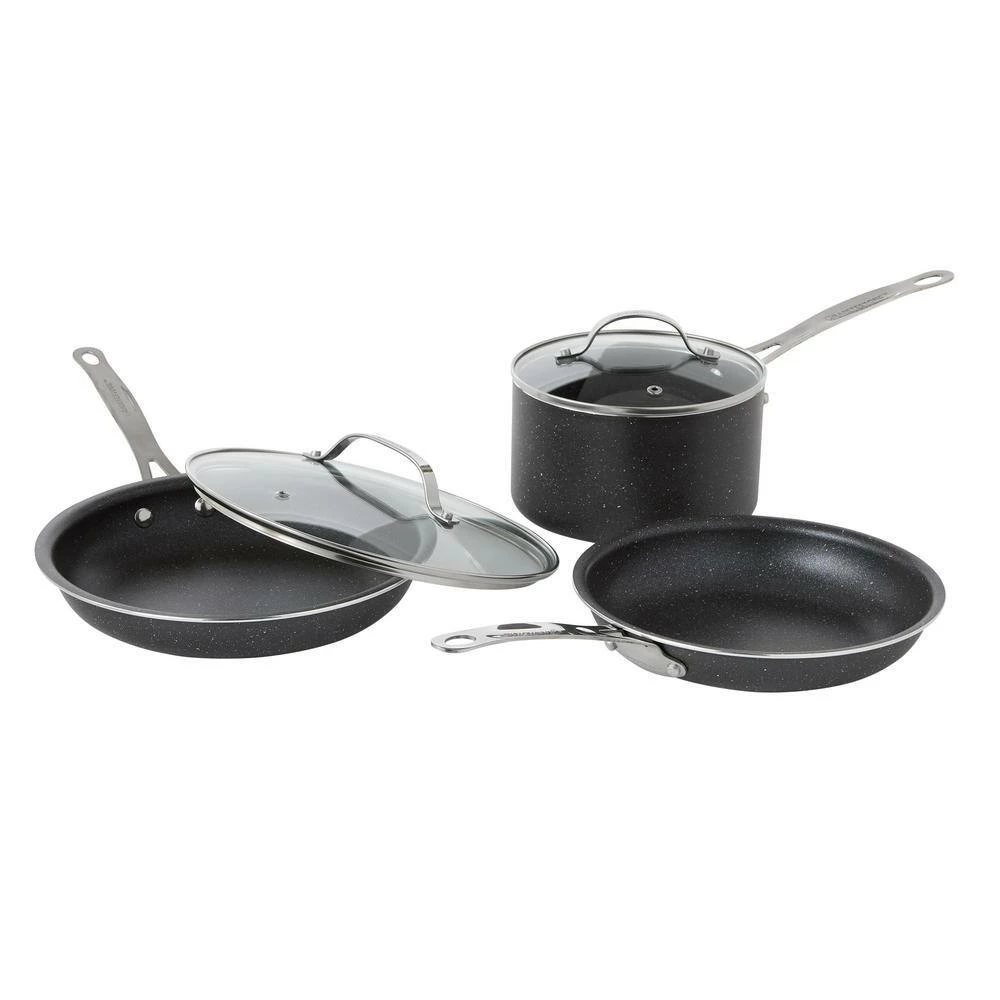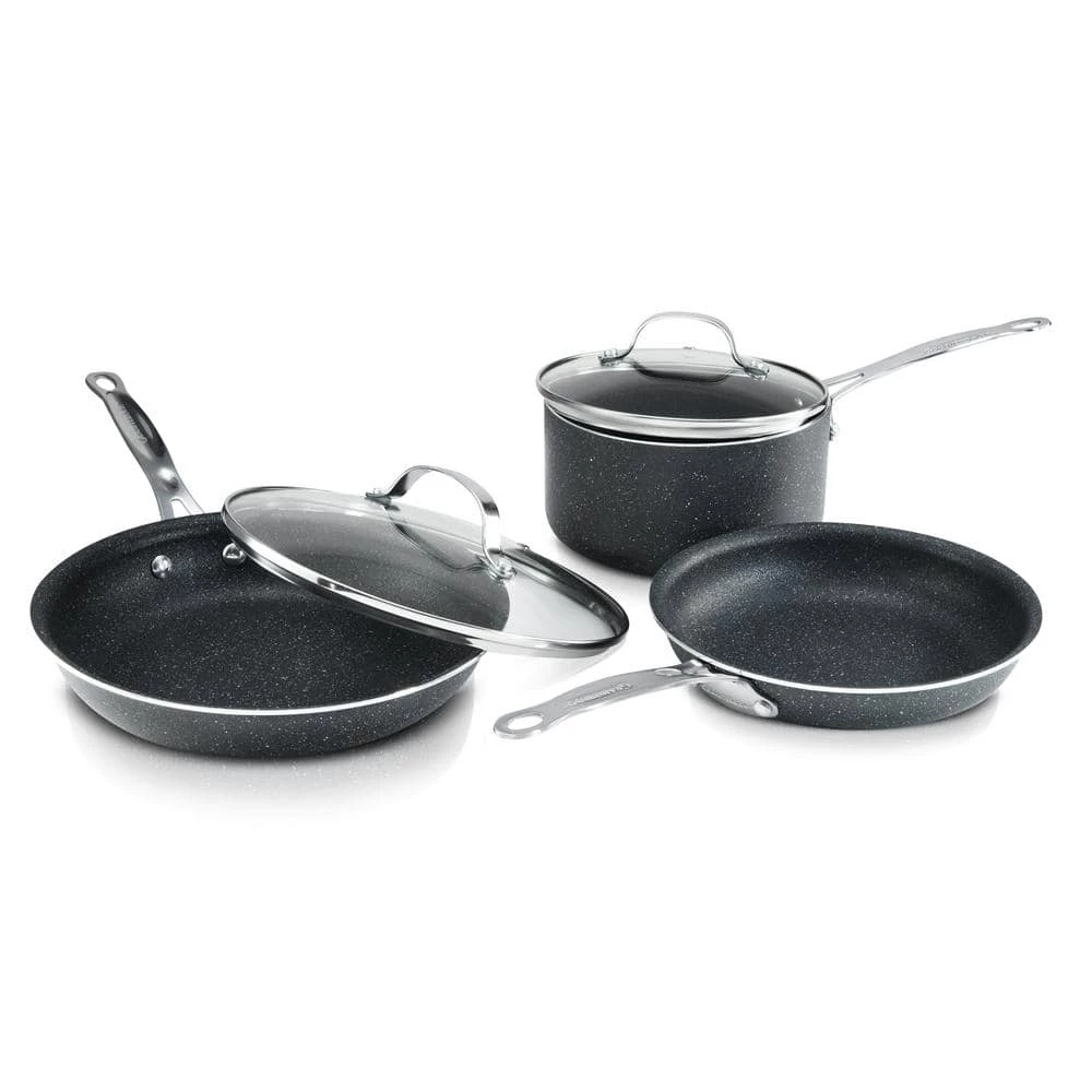 Pioneering Granite Stone Diamond cookware features a mineral infused granite coating that is the perfect blend of nonstick, durability & ease of use. GraniteStone Diamond cookware is pressed from a single sheet of aluminum and layered 3 times with our proprietary coating for the ultimate nonstick experience which requires no oil, making healthy cooking easy. The extra thick coating is super durable and is scratch resistant and metal utensil safe. The pans sleek and modern speckled exterior with neutral tones will match any kitchen decor. Cleanup is a breeze too, and the pans will look new even after years of use.