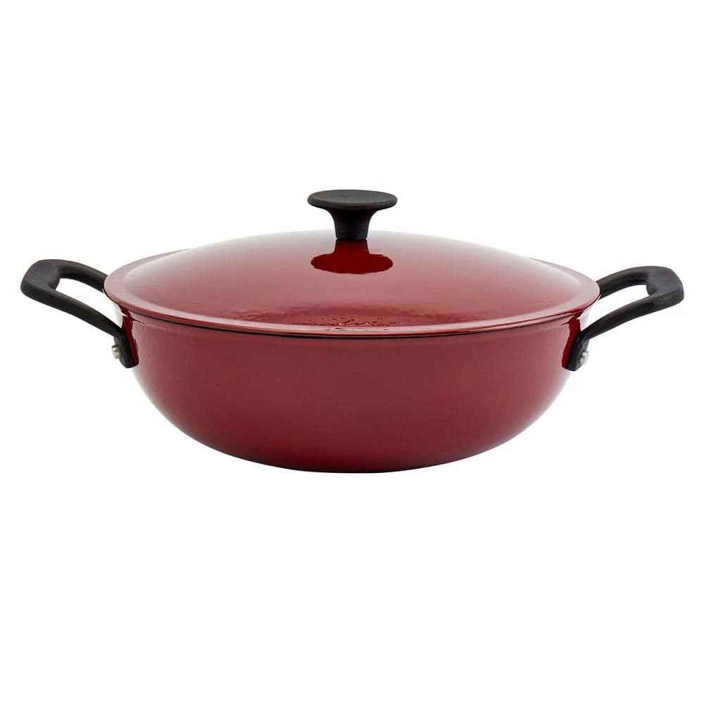 The enameled cast iron cookware set from Mason Craft & More is a beautiful piece of cookware designed for long-lasting performance and durability. The enameled cast iron construction enhance the cooking process by evenly distributing heat and locking in moisture to deliver tender, flavorful food. Perfect for everything from slow-cooking to baking, these cookware set is essential for any kitchen collection.CONTAINS :* 4.5Qt Braiser* 11″ Grill Pan* 10″ Fry Pan* 12″ Fry Pan