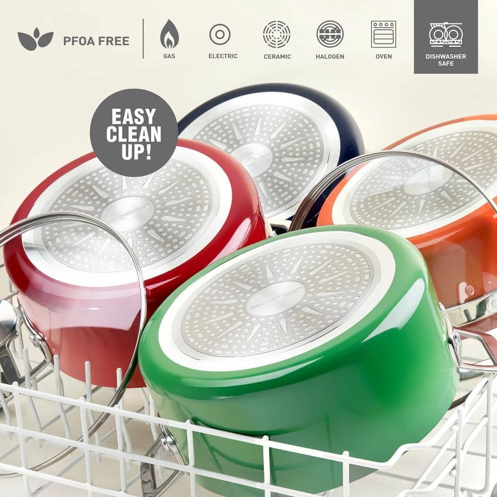 - Even heat distribution – granite stone diamond everyday pot is constructed from aluminum and carefully coating 3-times, ensuring even heat distribution all around with no dead zones or hot spots for a perfect meal, every time
