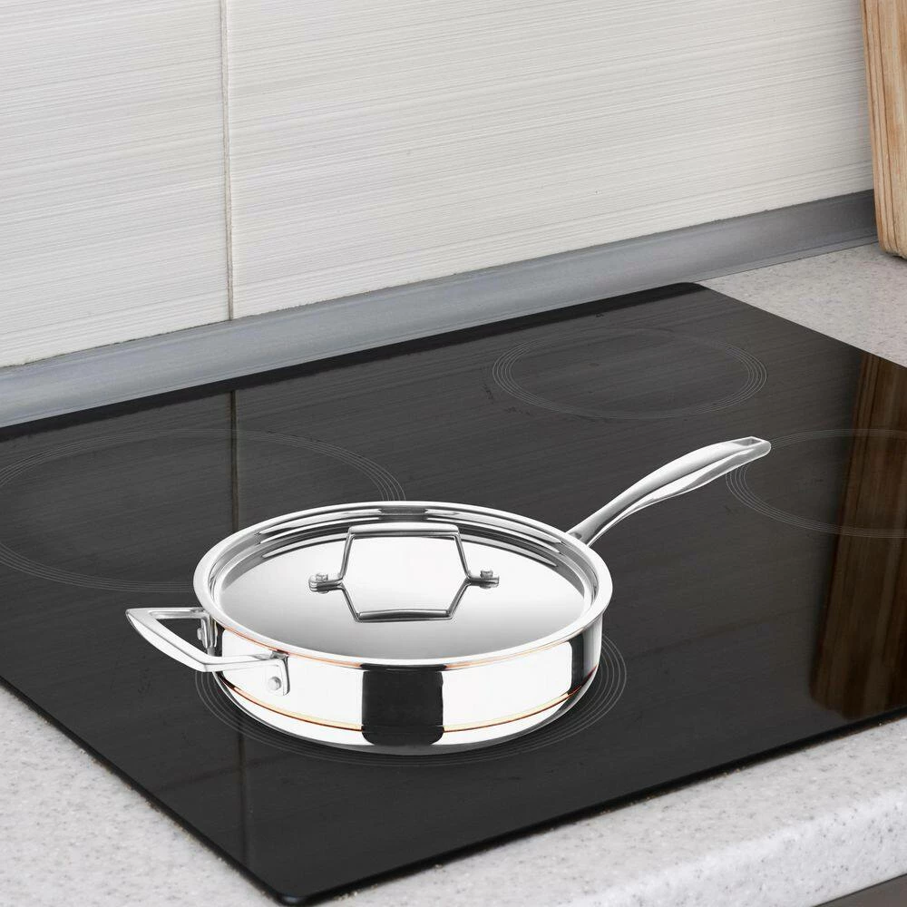- 5-ply bonded copper core construction for long lasting professional-grade cookware