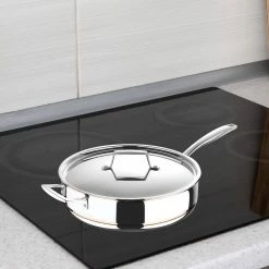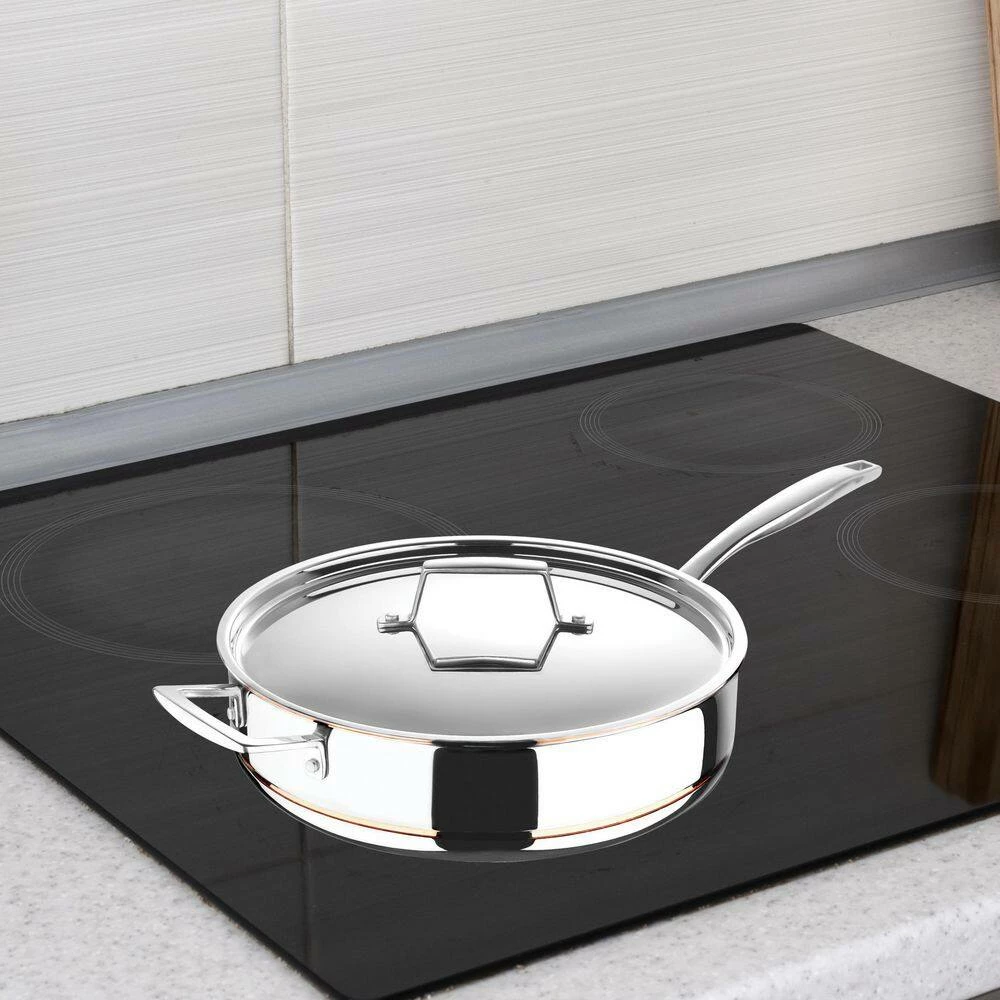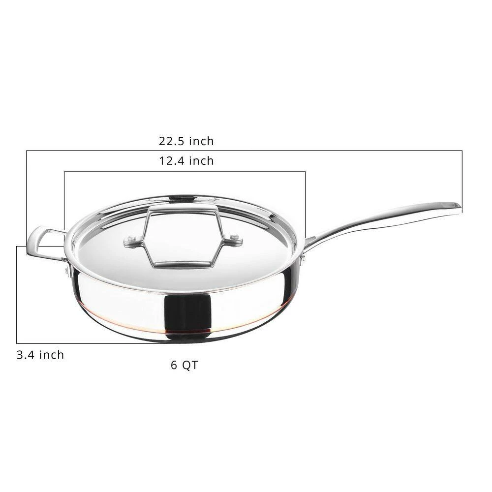 - 5-ply bonded copper core construction for long lasting professional-grade cookware