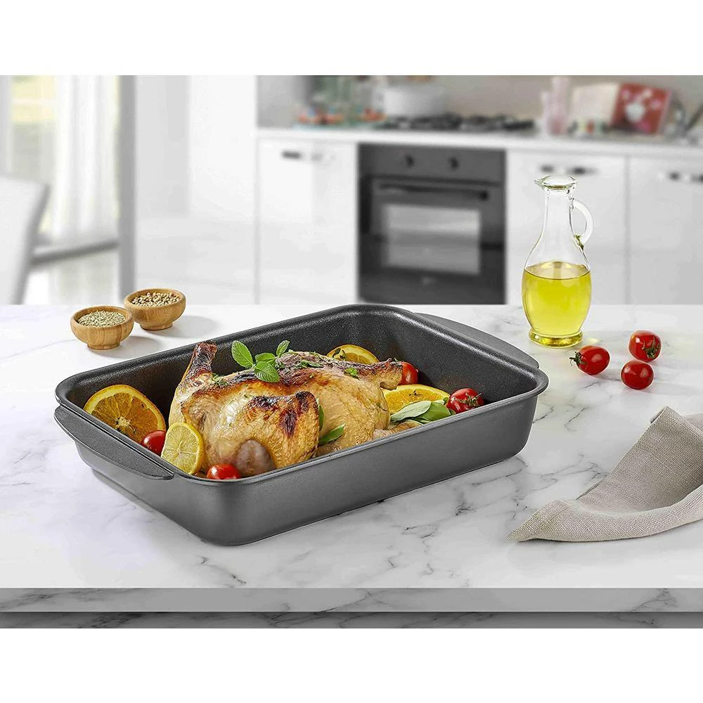 - Latest technology: 4mm of forged aluminum provides a thicker, stronger roasting pan that is coated with three layers of premium quantanium nonstick titanium coating