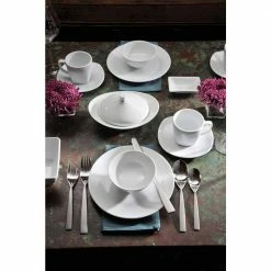The Oneida Fusion line is perfect for a variety of high-end dining rooms in fine dining restaurants and can also be used in more casual banquet halls for extra versatility. Made of fine porcelain, this dinnerware is fully vitrified for added durability and stain-resistance. The bright white color is also great to match with subtle cream or pastel colored table linens to create a cohesive, fine dining experience.