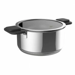 - Each pot boasts a brushed interior, polished mirror exterior, and a magnetized impact-bonded base for unrivalled heat conductivity and use on induction stoves