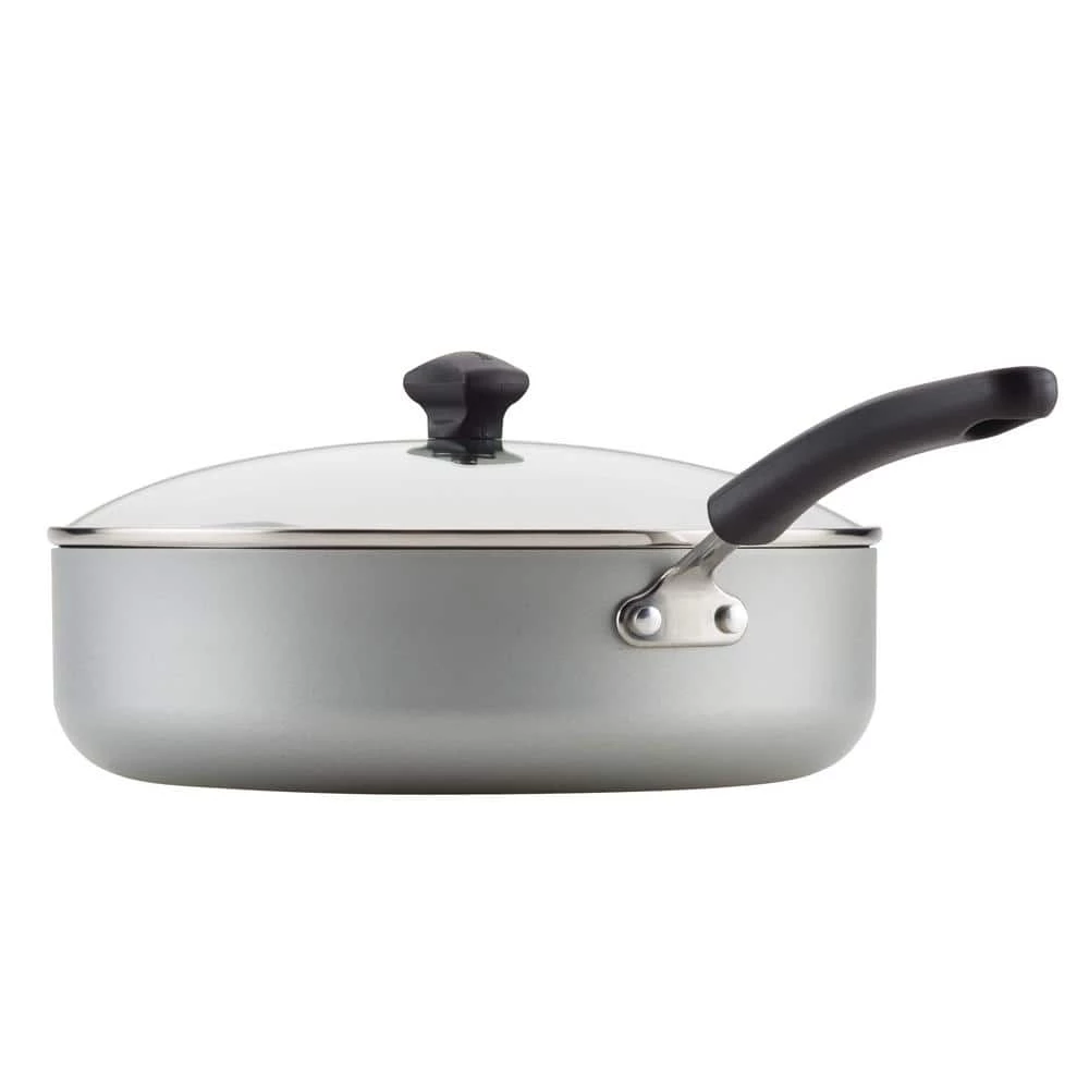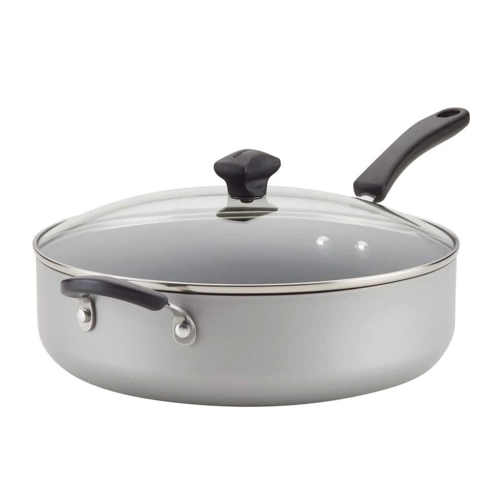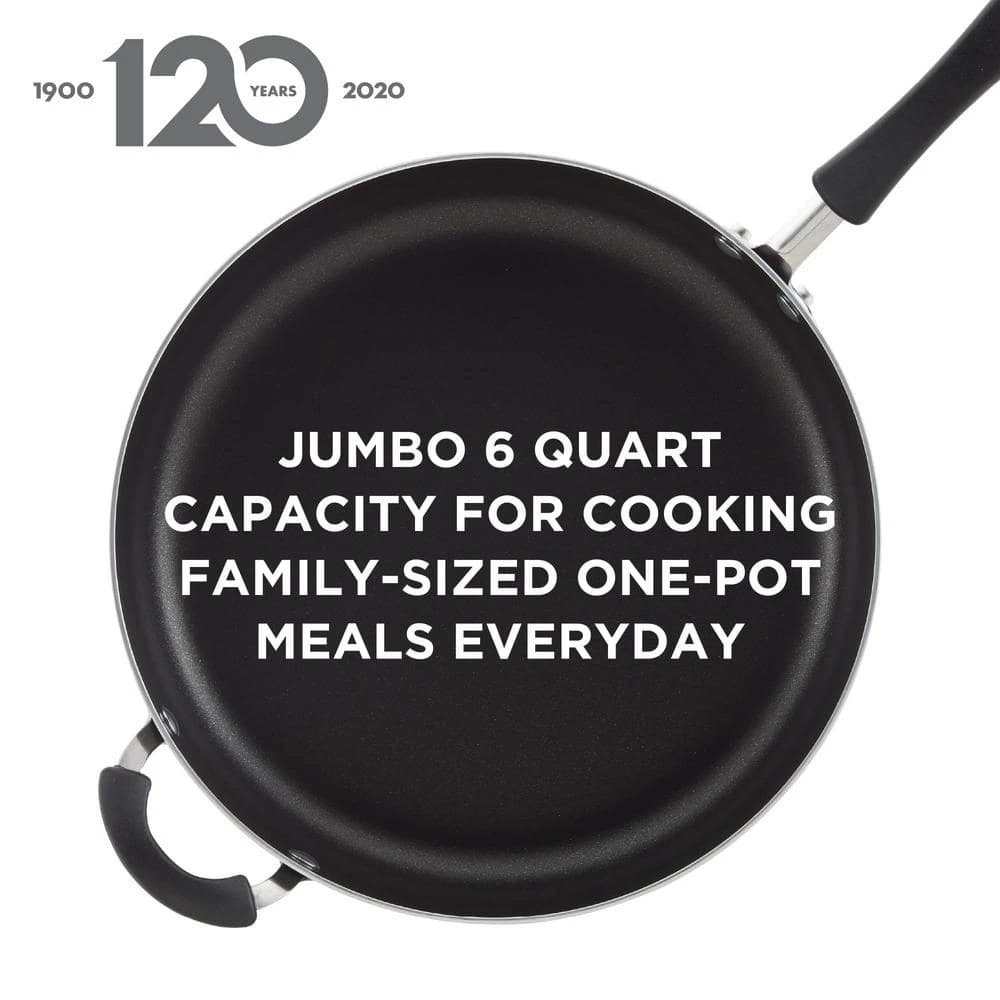 “Equip the kitchen for convenience and reliability to make family-sized one-pot meals with the Farberware Cookstart 6-Quart Nonstick Jumbo Cooker. Crafted from heavy-duty aluminum for excellent heat distribution, this big jumbo cooker is ideal for making a zesty seafood paella or a delicious cheddar mac-n-cheese and boasts a superior DiamondMax(tm) nonstick interior that performs 3X better than ceramic nonstick for easy food release and cleanup with a distinctive look. Oven safe to 350°F with comfortable handles for a confident grip, this jumbo chef pan has a shatter-resistant glass lid to seal in heat and moisture and a colorful exterior that looks great in any kitchen. Plus, it’s dishwasher safe for quick, convenient cleanup. Be ready to create big and delicious one-pan meals every day with the convenient, easy cleaning Farberware Cookstart 6-Quart Nonstick Jumbo Cooker with DiamondMax(tm) Nonstick.”