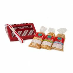 - The gift box includes 1 lb. each of Ladyfinger, Baby White, and Baby Yellow kernels. These are a hull-less variety of kernels, known for their thin hull that shatters upon popping. They are also highly popular for their crunchy texture and delicious flavor.