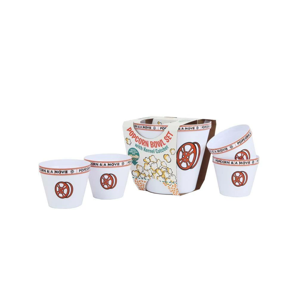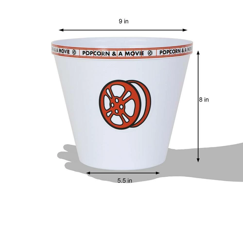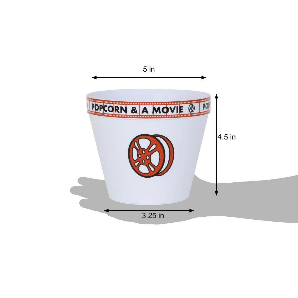 - 1 large and 4 small film reel-themed popcorn tubs. Each bucket features a removable kernel separator that drops the unpopped kernels into the bottom of the bucket where they don’t interfere with your popcorn enjoyment