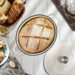 - Round shape is particularly suited for larger cuts of meat, whole chickens, and for baking oval-shaped loaves of bread
