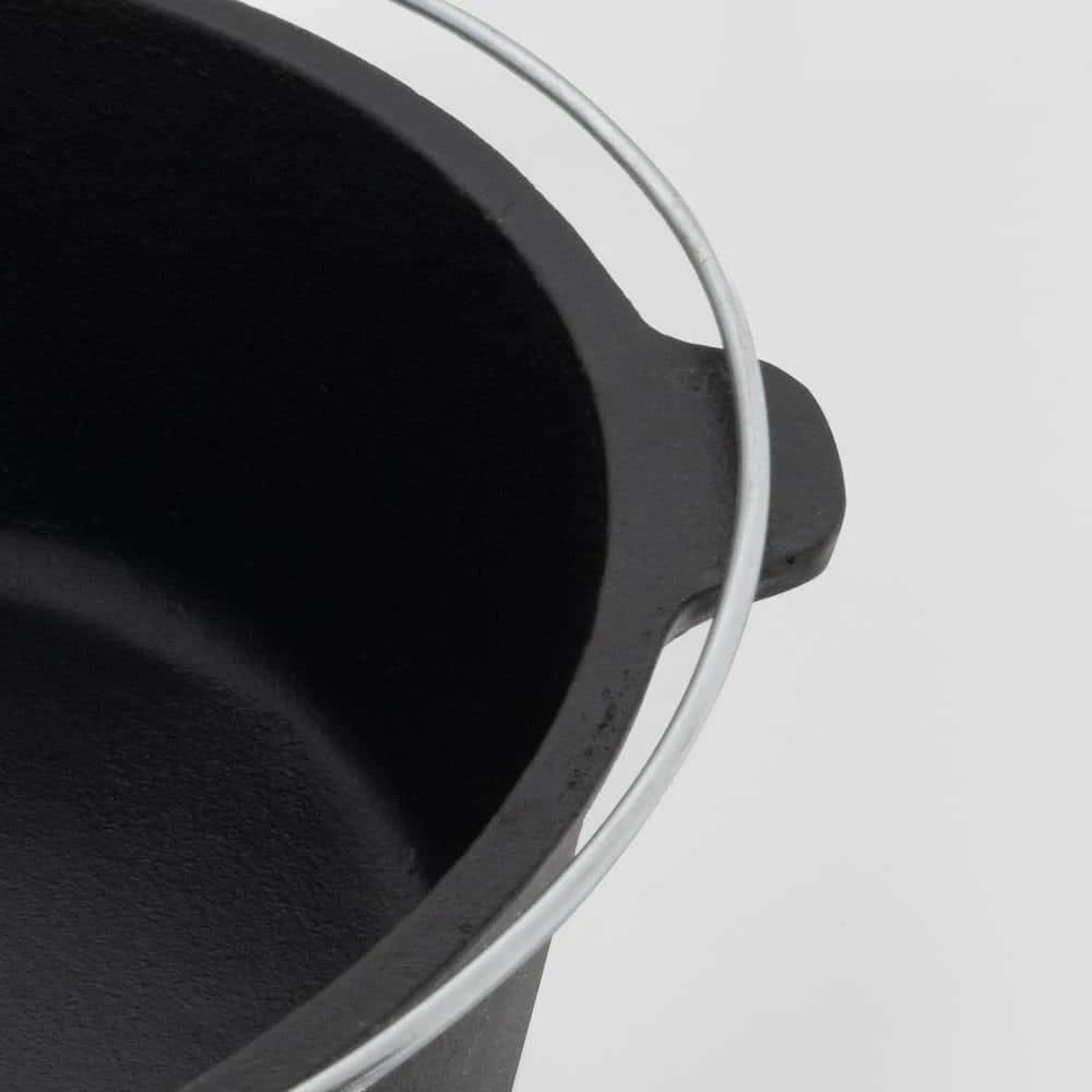 Take pleasure in cooking a campfire meal on your next outdoor excursion or craft a delicious dinner roast for the family with this 6 QT. Dutch Oven. Sturdy and durable, this cast iron Dutch oven has been constructed to be reliable and long-lasting in and outside of your home. Lock in the flavors of your crafted creations with its well-fitted lid and create wonderful experiences that make this Dutch oven the perfect cooking companion. Easily hang from a tripod to control cooking heat and temperature or keep it stationary with the built-in leg base for added stability. Regularly season and re-oil to extend the life of your Dutch oven. Hand wash only to prevent rust.