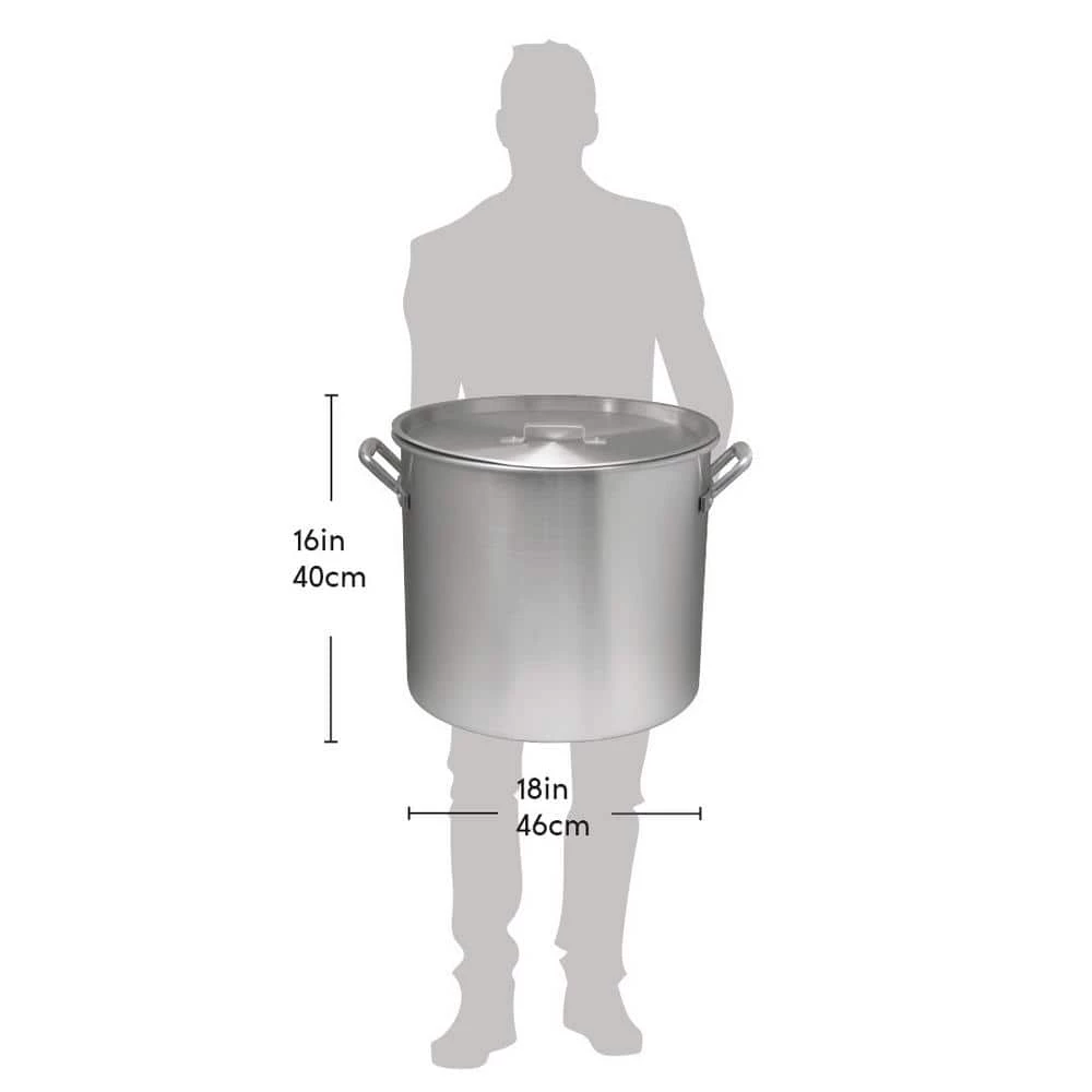 - 64 qt. stockpot with premium quality aluminum body and vented lid