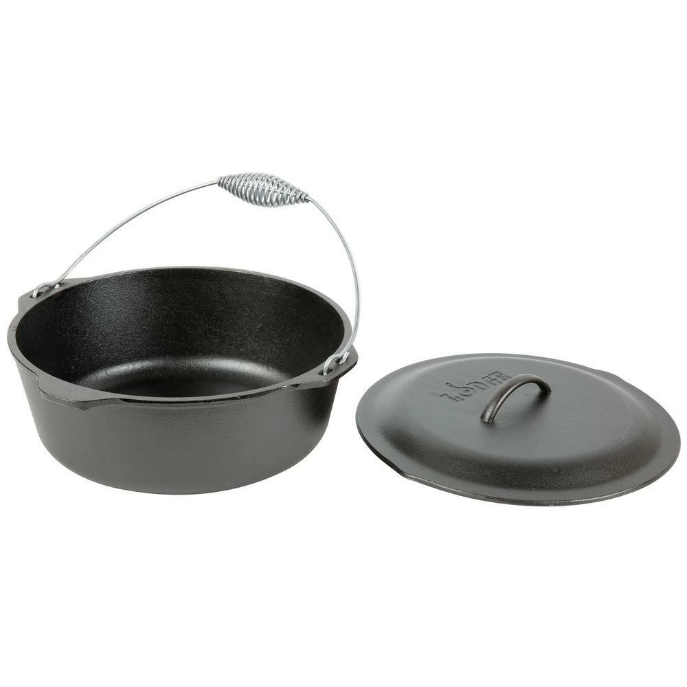 The 7 qt. Lodge traditional Dutch Oven with wire bail handle has been popular for over a century and is perfect for camp and hearth cooking. It conducts heat evenly with no hot spots and maintains heat for efficiency and cooking control. It’s seasoned with vegetable oil and ready to use right out of the box.