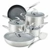 - 8-piece set includes: 1.5-quart saucepan, 2-quart saucepan, 5-quart saute pan, 10-inch fry pan, 11-inch fry pan, and 3 lids