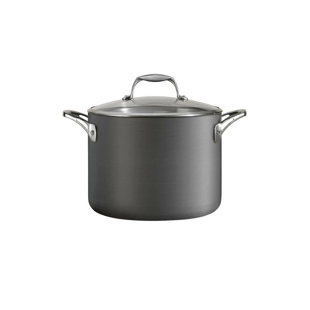 Whether you’re making a delicious seafood dinner for date night or a large quantity of macaroni and cheese for the kids and their friends, the Tramontina 8 Qt. Hard Anodized Aluminum Covered Stock Pot has got you covered. Its heavy-gauge aluminum construction allows for a reliable uniformity, while the heat- and shatter-resistant glass lid helps reduce spills and keep in the heat. With a durable hard anodized exterior finish and a reinforced nonstick interior coating made without PFOA, this stock pot is sure to last you years and make clean-up a breeze. Its stainless steel lid and side handles also come with a satin finish, making it a sleek and modern addition to your kitchen. The Tramontina 8 Qt. Hard Anodized Aluminum Covered Stock Pot is-compatible with gas, electric and ceramic glass cooktops, is oven-safe up to 350°F / 176°C, and-includes a lifetime warranty.