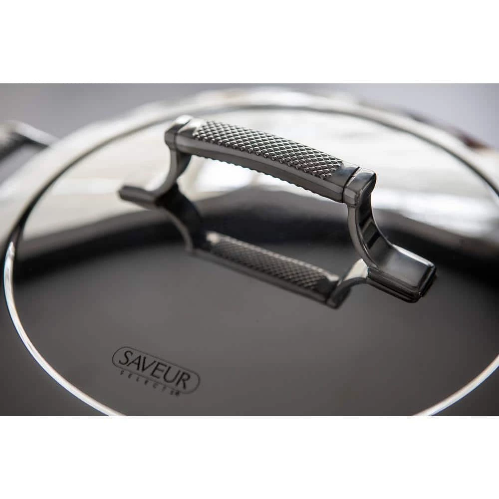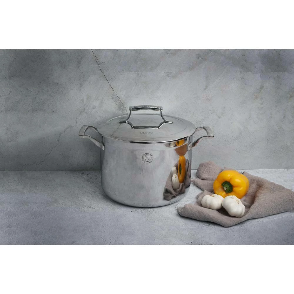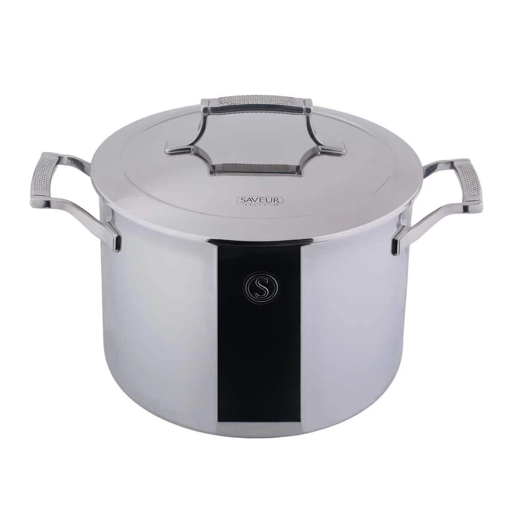 The SAVEUR SELECTS Voyage Cookware Collection brings affordable and stylish performance cookware to culinary explorers who love the art of cooking. The collection has been designed with multiple features to enhance the cooking experience from kitchen to table. Our Cookware features Tri-Ply stainless steel construction, Double walled lids with internal drip ridges, stay cool and non-slip handles.