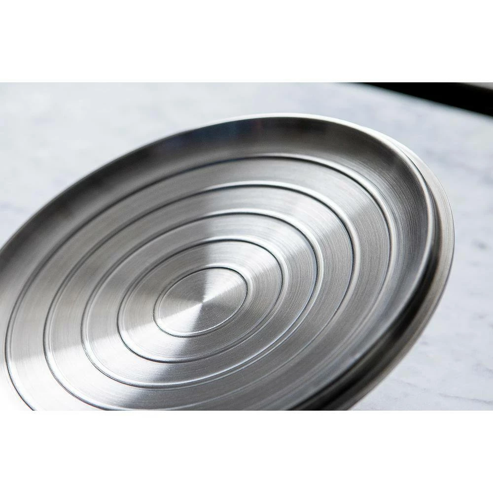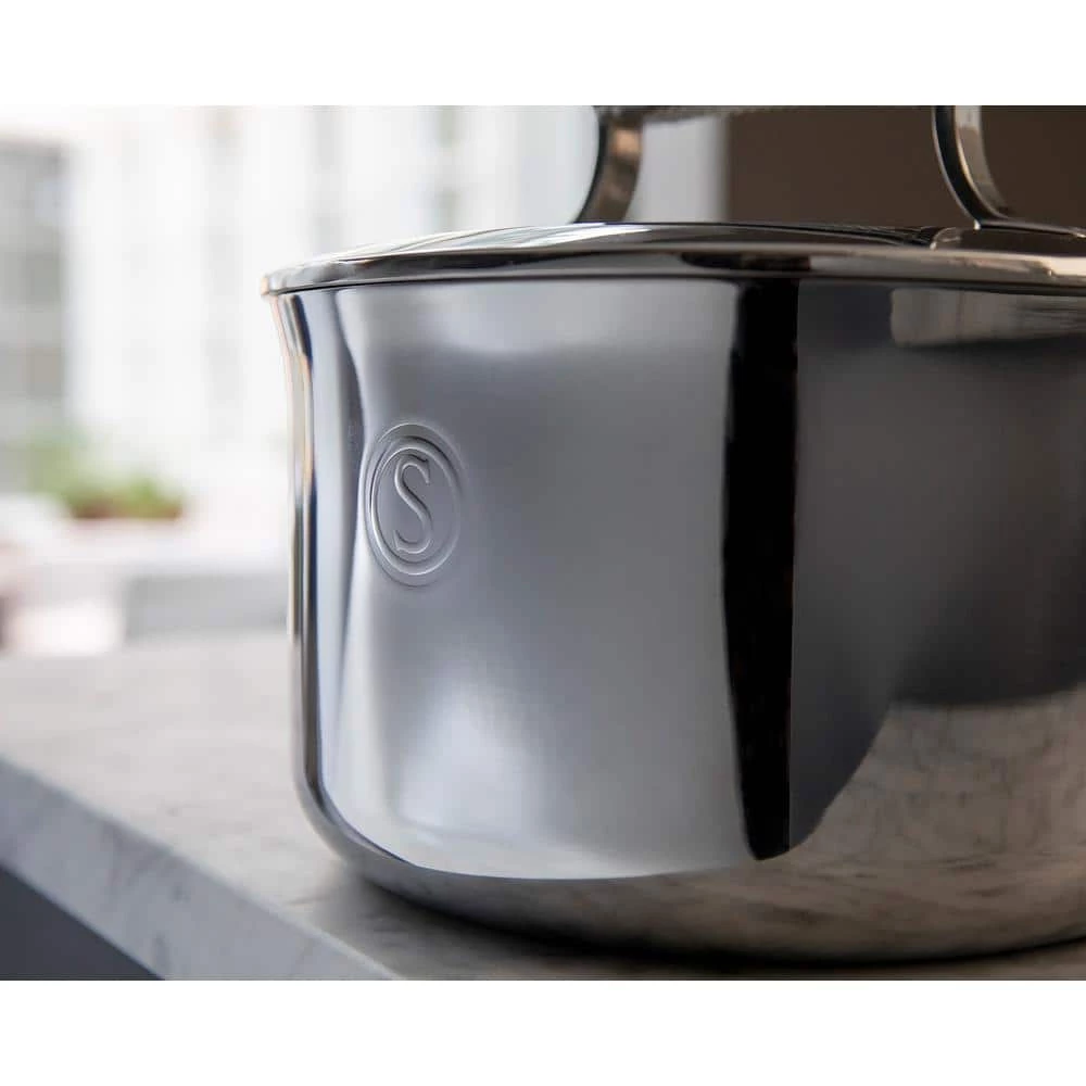 - Tri-ply stainless steel construction with an aluminum core for fast and even heat distribution