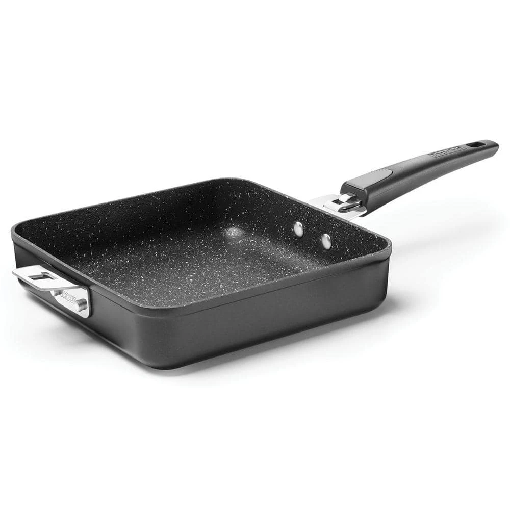 THE ROCK by Starfrit 9 in. Fry Pan/sq. Dish with T-Lock Detachable Handle will help you save storage space. The T-Lock system means the handle can be removed for storage and reattached once the pan emerges from the oven or dishwasher. And not only does the T-Lock system save up to 40% in storage space by eliminating the awkward handle, it can be used with or without the handle, from cooktop or oven to table. Plus, this pan uses the same surface treatment and nonstick coating that makes THE ROCK so unique.