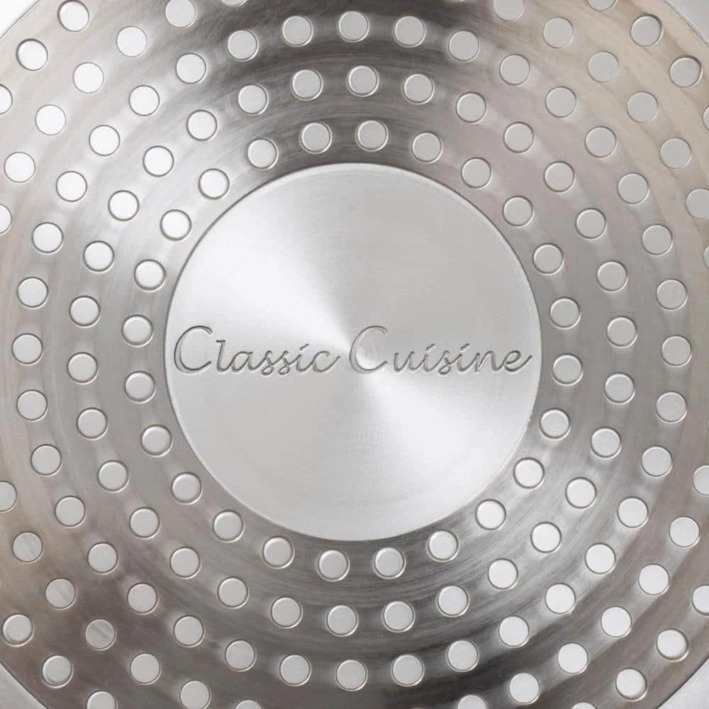 Allumi-shield Cookware by Classic Cuisine is durable aluminum cookware with 2-Layers of Non-Stick Ceramic Coating for healthier cooking and easy clean up. Each of our pans has an a specially designed extra thick magnetic bottom for even heat distribution and induction cooktop compatibility. All these great features work together to give you the best lasting cookware.
