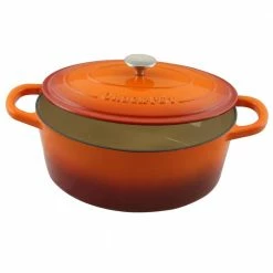- Made of enameled cast iron with a non-stick surface for even heat distribution and retention
