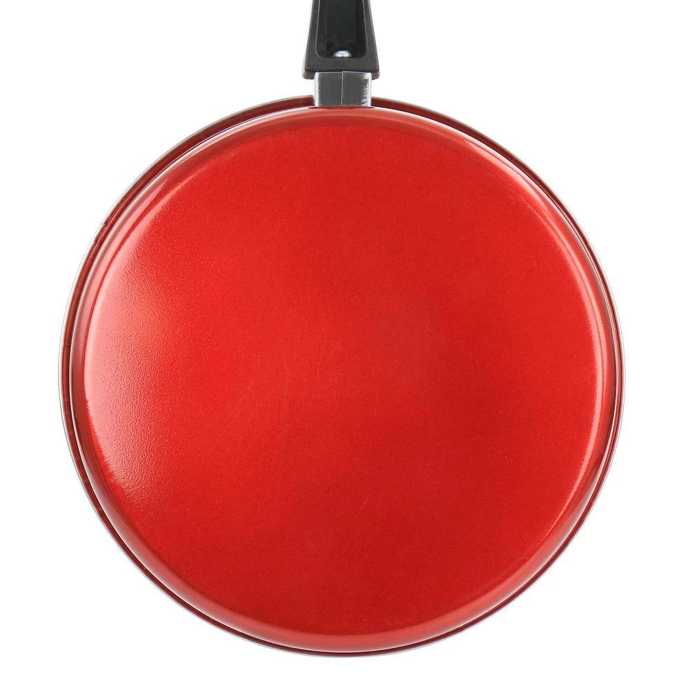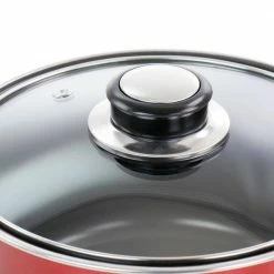 Update your home kitchen cookware collection with the Gibson Everyday Cardinal 7 Piece Nonstick Steel Cookware Set in Red. Every piece features bakelite handles for convenient heat-resistant handling. The nonstick coating allows for less cooking oil and quick cleaning. For long lasting care, hand wash the cookware to preserve the nonstick surfaces. These brightly colored pots and pans beautify the kitchen as you boil, fry, sear, or stew the next perfect dinner.