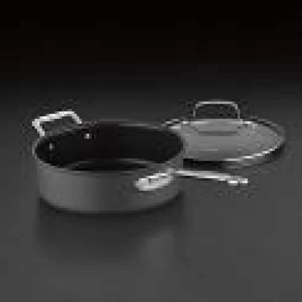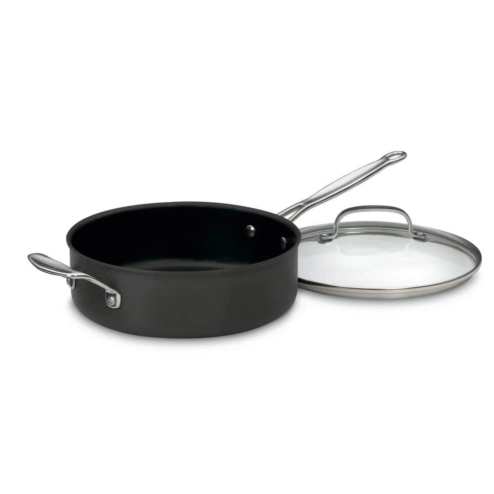 The Cuisinart 633-24H Chef’s Classic Non-Stick Hard Anodized 3.5 Qt. Saute Pan with Helper Handle and Cover has high, straight sides to maximize capacity. The versatile pan is ideal for lightly frying a variety of meats, poultry or fish. A tight-fitting cover seals in moisture and nutrients, tenderly finishing the cooking process with healthier, more flavorful results. A solid stainless steel riveted handle stays cool on the stovetop with the helper handle providing extra support and balance when lifting and pouring. Metal utensil safe, the quantanium non-stick cooking surface is reinforced with titanium for lasting food release, healthy cooking and easy cleanup. Great for classic cooking techniques like sauteing, frying, browning, searing and slowly simmering delicate sauces, this pan is constructed to last.