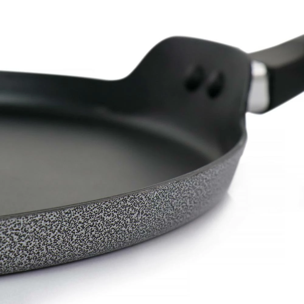 Enjoy making the most delicious pancakes in the morning with the Oster 11 in. Nonstick Aluminum Pancake Pan. The nonstick interior is perfect for low fat cooking. The Bakelite handles stays cool as you cook all your delicious meals. Made of strong durable Aluminum material. Make this the perfect addition to your kitchen to compliment your cookware collection.
