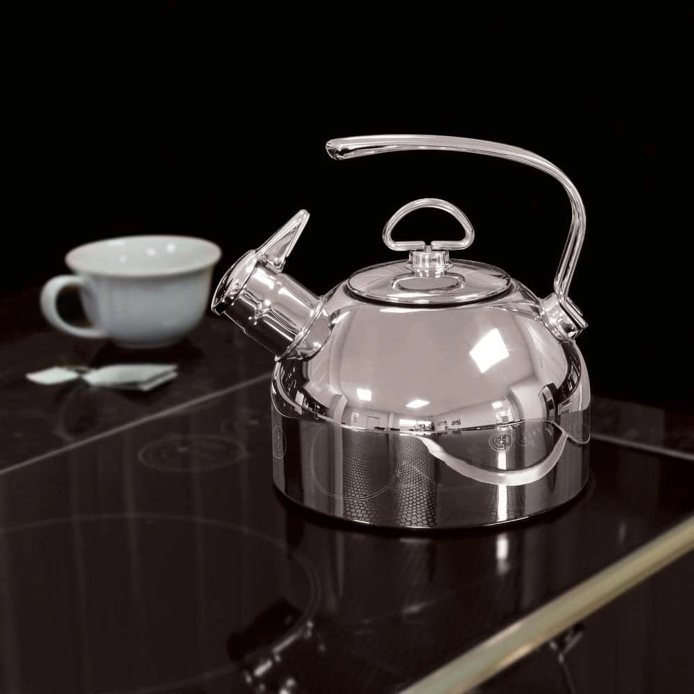 Chantal’s Classic Teakettle rocketed to popularity when introduced 30-years ago. The accolades continue for this timeless Chantal original, sure to remain a design icon and home favorite for the foreseeable future. This kettle is part of Chantals Classic Series which includes the finest teakettles from our collection. Each design offers incomparable elegance and is designed for exceptional use. Featuring our exclusive two-tone harmonica whistle, this kettle doesn’t just whistle it sings. The smooth, flat base creates maximum contact for rapid boiling, and the extra-large opening allows for easy cleaning and handling. Chantal tea kettles are perfect for all cooktops Including magnetic induction. Includes FREE quilted mitt for your convenience.