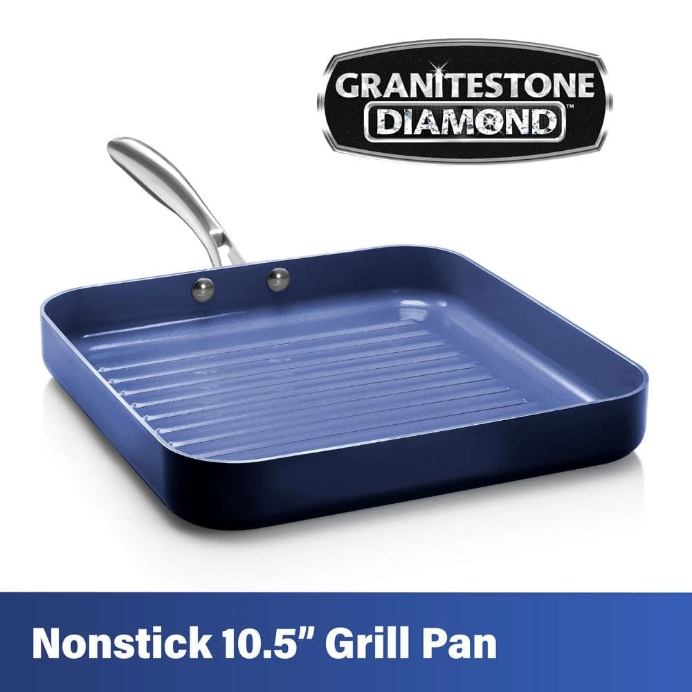 - Ultra non-stick – the Granite Stone blue nonstick cooking surface is coated 3x, reinforced with diamonds to deliver the ultimate food release, no oil or butter needed, makes for healthier eating and provides for hassle free, 1-2-3 cleanup