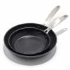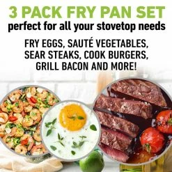 - 3-piece nonstick frying pans set – set includes an 8 in., 10 in. and 12 in. frying pan, which are perfect for nearly every kitchen task. 10 in. perfect for sunny side ups, sauteing vegetables, steaming broccoli, whipping up pancakes, scrambled eggs and omelets, searing steaks, grilling burgers and so much more