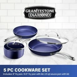 - Ultra non-stick – the granite stone blue nonstick cooking surface is coated 3x, reinforced with diamonds to deliver the ultimate food release, no oil or butter needed, makes for healthier eating and provides for hassle free, 1-2-3 cleanup