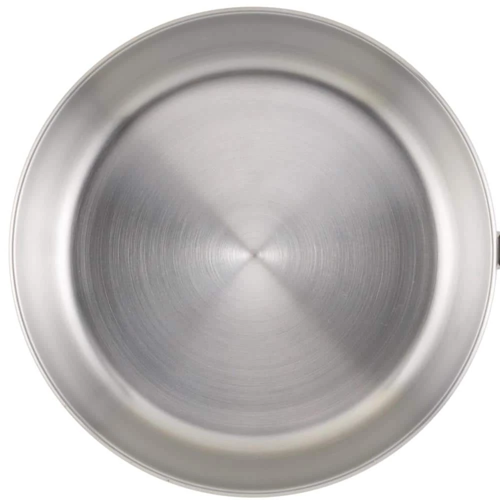 - STAINLESS STEEL FRYING PANS: The full cap bases on the stainless steel frying pans feature a thick aluminum core surrounded by stainless steel for rapid, even heating
