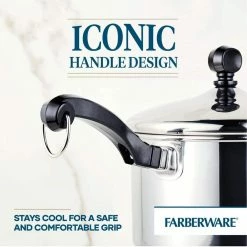 - DURABLE CONSTRUCTION, COMFORTABLE DESIGN: Comfortable handle with iconic styling provides a confident grasp; stainless steel, snug-fitting lid boasts bell shape, rolled rim and stylish knob