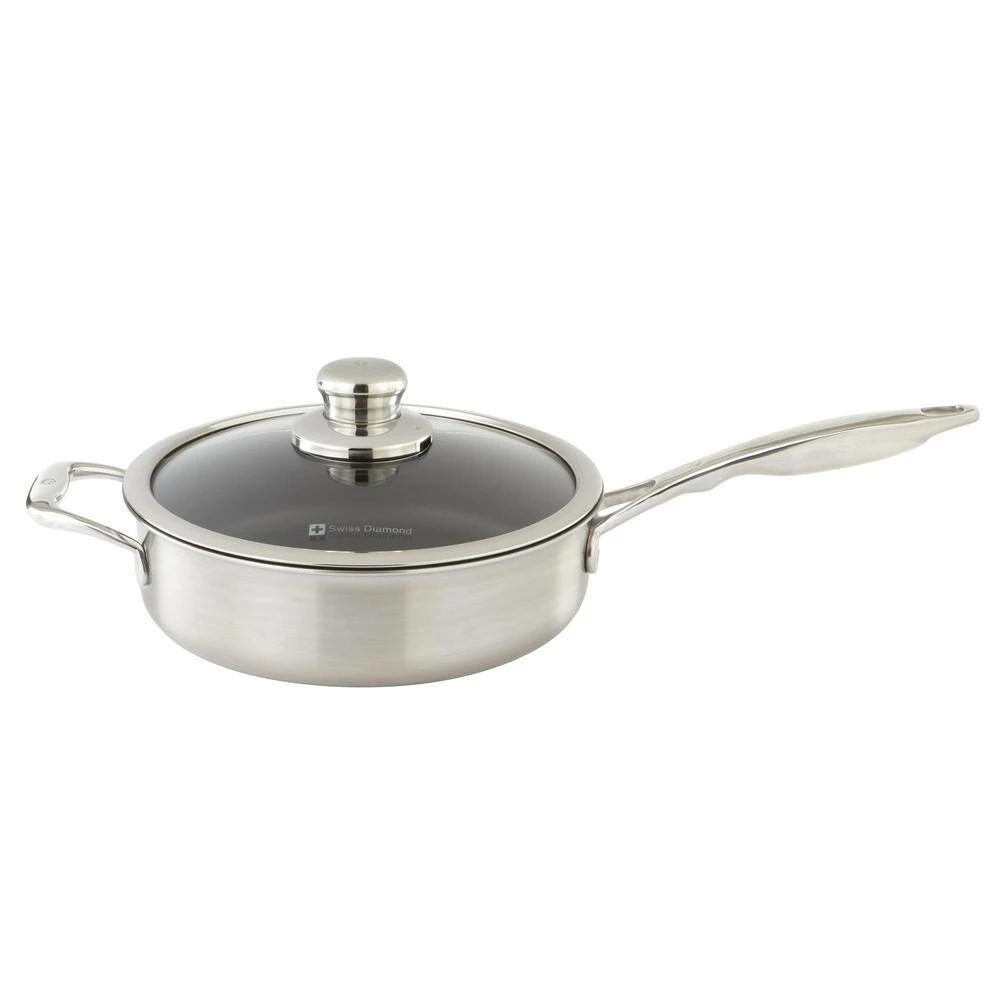 Durable and elegant, the Non-stick Clad 9.5 in. Saute Pan is truly a one of a kind. From creamy pastas to chicken and fish, this pan is perfect for any meal. The special construction of the Non-stick Clad line features a solid foundation of five layers including an 18/0 magnetic stainless steel base, alternating pure and alloy aluminum and an 18/10 stainless steel layer reinforced with our revolutionary diamond Non-stick coating. These bonded layers allow for the heat to be distributed evenly throughout the pan, removing all possibilities of hotspots.