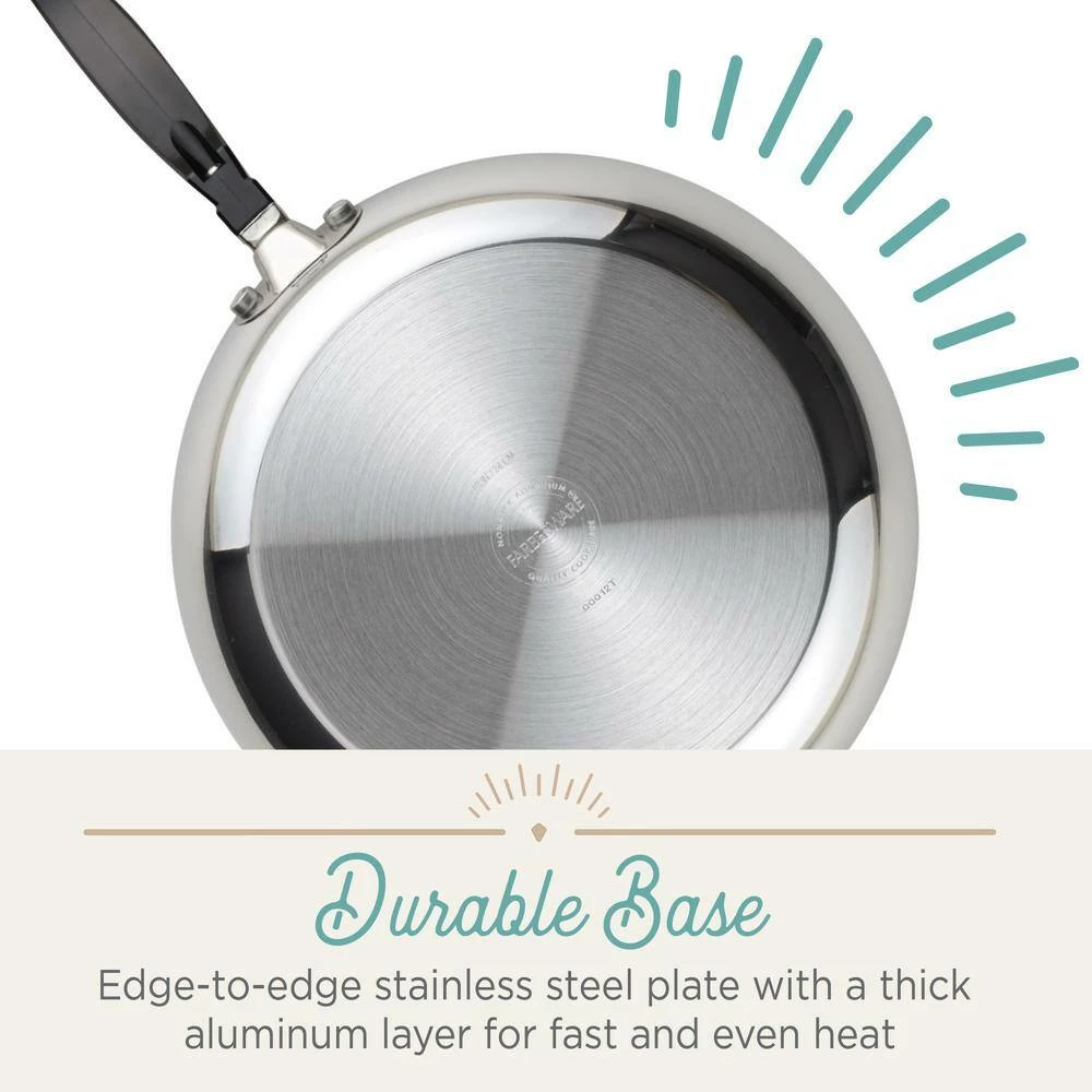 - QUICK, EVEN HEAT DESIGN: A full cap base on the saucepot features a thick aluminum core surrounded by stainless steel for rapid, even heating