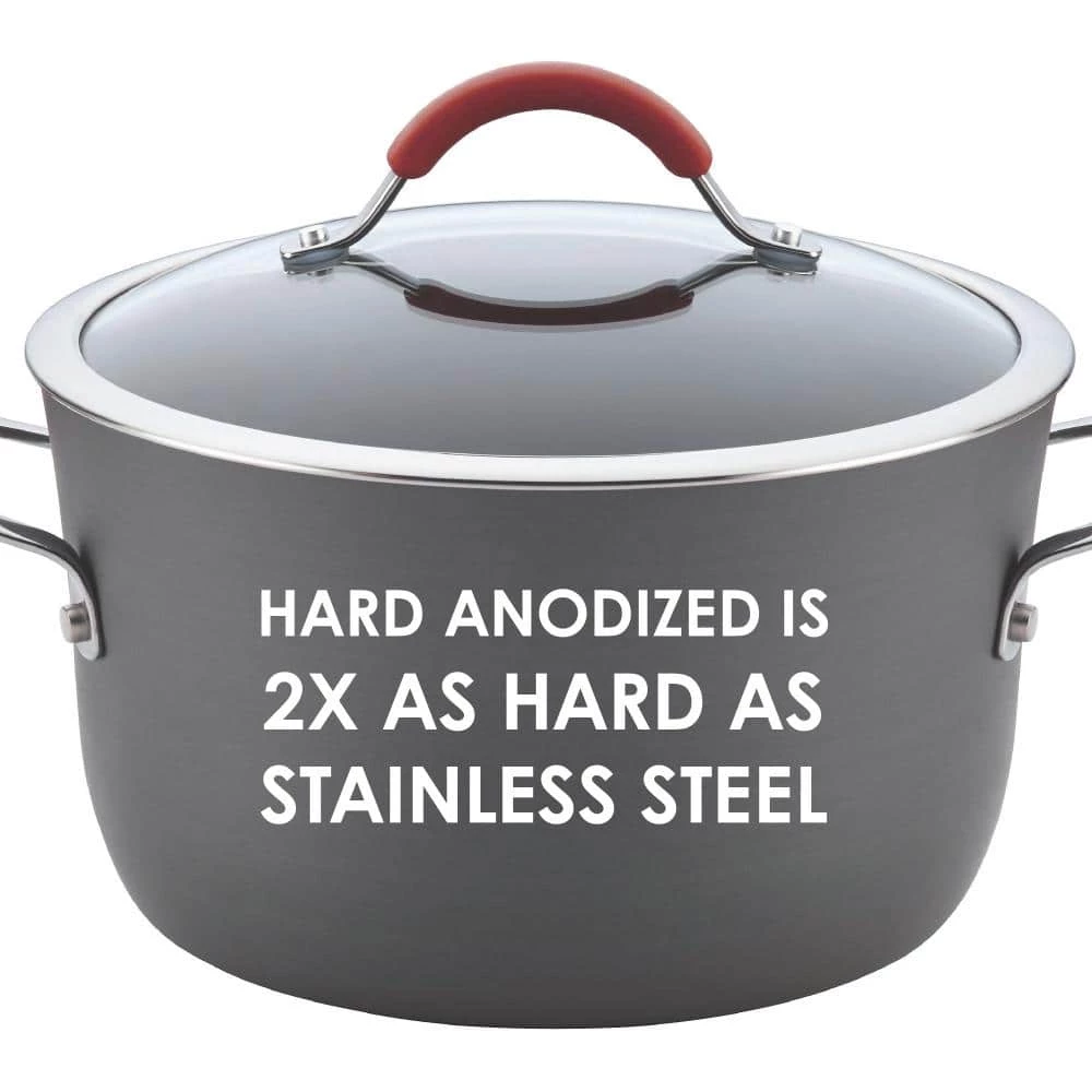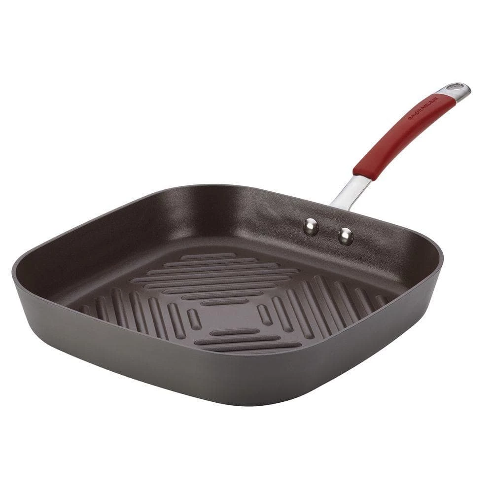 Rain or shine, the rustic, modern Rachael Ray Cucina Hard-Anodized Nonstick 11-Inch Deep Square Grill Pan offers an enjoyable way to grill delicious foods indoors. The stylish, indoor grill pan is sturdily crafted from hard-anodized aluminum to provide fast, even heating and to help reduce hot spots that can burn foods. Ridges on the bottom of the deep stovetop pan add appetizing grill marks to food, and the grill’s deep sides aid in keeping stovetop splatters to a minimum. The indoor grill pan’s appealing espresso-colored nonstick is PFOA-free and long-lasting to provide easy food release and cleanup, and a double riveted handle provides comfort and control when grilling steaks or grilling burgers. Oven safe to 400°F and suitable for all cooktops (except induction), this nonstick grill pan is also dishwasher safe for easy cleanup. Orders are up with the Rachael Ray Cucina 11-Inch Hard Anodized Nonstick Deep Square Grill Pan that brings easy sizzling, searing, and indoor grilling to the stovetop.