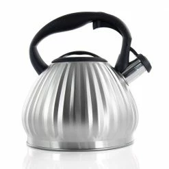 Prepare your hot coffees, teas, and cocoas with the Mr. Coffee Donato 2.5 Qt. Stainless Steel Whistling Tea Kettle Brushed Chrome. This kettle is crafted from quality stainless steel and with an integrated whistle which signals when the water is boiling. The flip up spout cover equipped with this kettle also allows for safe and easy pouring. This stove top kettle is also hand wash only in order to maintain its quality.