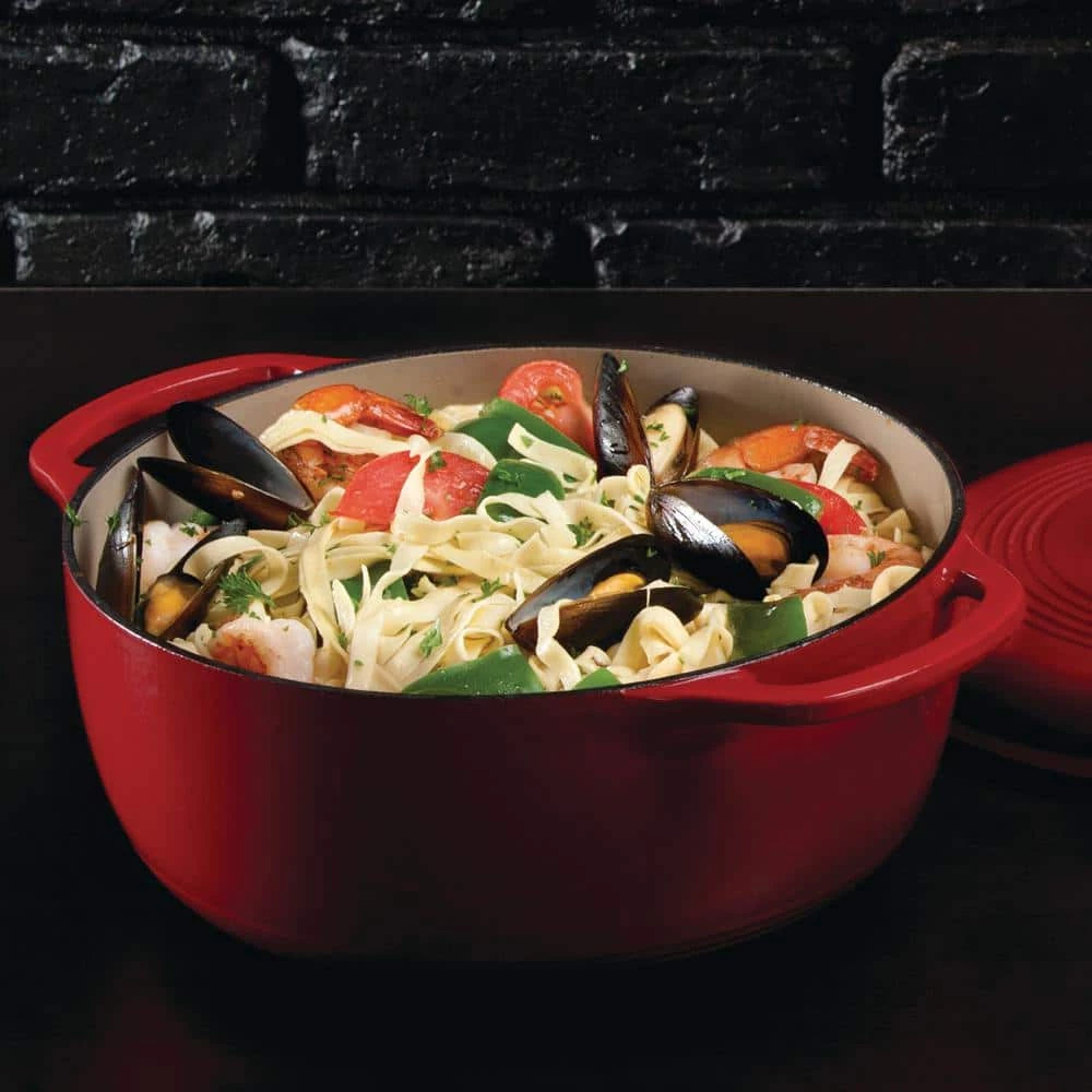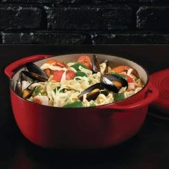 A flawless pairing of form and function, the Lodge Enameled Dutch Oven is a classic way to both prepare and serve memorable meals. The 6 Qt. capacity is perfect for pot roast, scrumptious stews or a large batch of beans. The right tool to marinate, refrigerate, cook and serve.