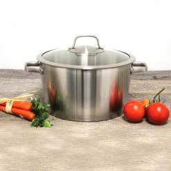 Need to cook soup, pasta or stews in large quantities, Get out this stylish stainless-steel stockpot and work your magic on any type of stove-top. Thanks to the base that’s designed for energy-efficient cooking and the two handles that guarantee safe and easy lifting, this pot is a dream to use and will help you prepare countless delicious meals. The large stockpot comes equipped with a clear glass lid that allows you to monitor your food during cooking without have to lift the lid.